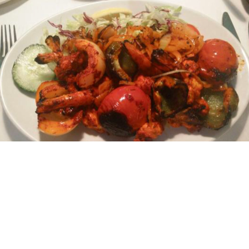 Chicken and lamb tikka, tandoori chicken, king prawn, green pepper and onions